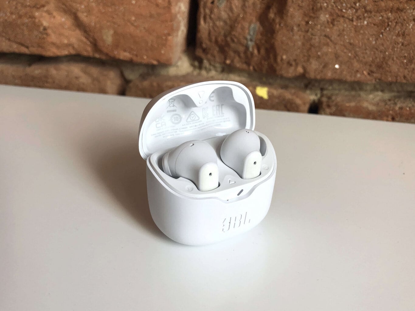 Im Gegensatz zu den teureren JBL Tour Pro 2 Kopfhörern unterstützt die Tune Flex Hülle kein kabelloses Laden.