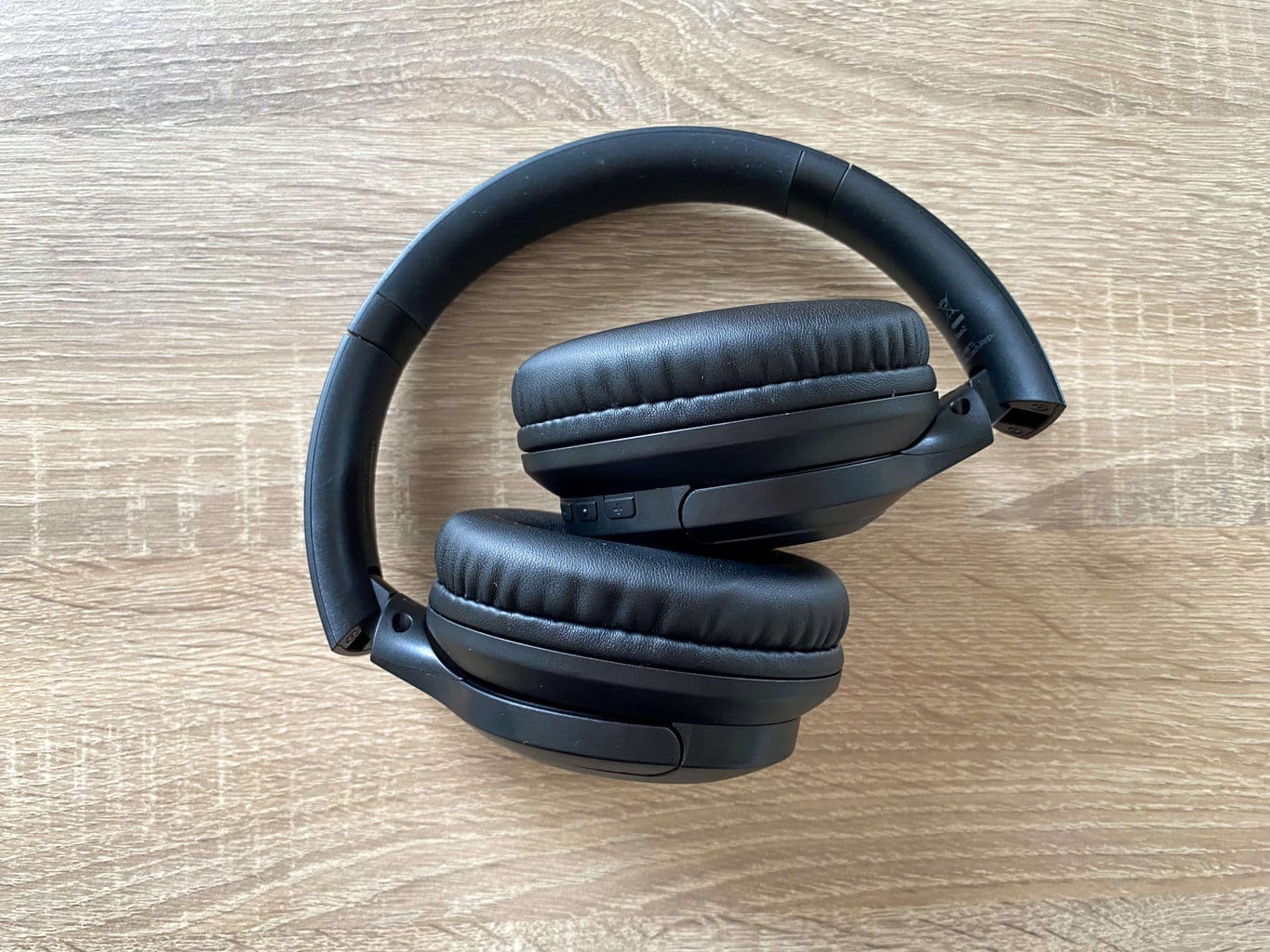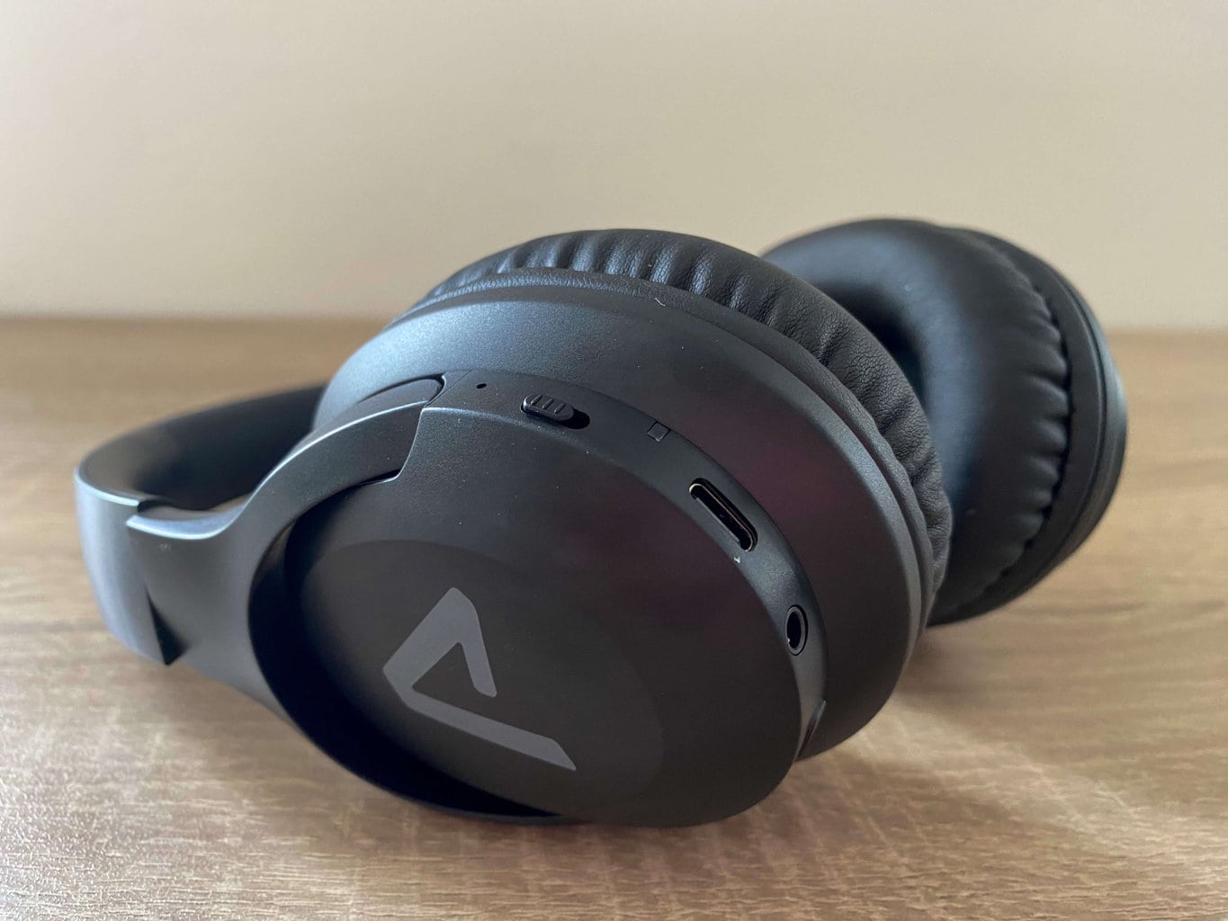 Zur Steuerung des Kopfhörers gibt es drei Tasten und einen Schieberegler (zum Ein- und Ausschalten). Alle diese Elemente befinden sich ausschließlich an der rechten Ohrmuschel. Wenn man den Kopfhörer einmal auf dem Ohr hat, ist es leider ziemlich schwierig, die richtige Taste zu finden. die schlechte Orientierung wird auch durch die Tatsache verstärkt, dass sich neben den Tasten ein USB-C- und ein Klinkenanschluss befinden, die einen blindlings verwirren können. Leider ist dies die Art und Weise, wie die meisten (auch wesentlich teureren) Kopfhörer die Bedienelemente verwenden.