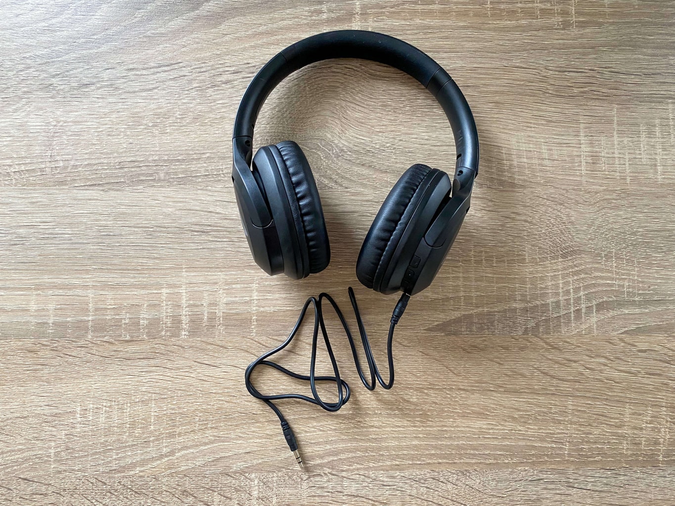 Persönlich hätten wir uns ein etwas längeres Netzkabel gewünscht. Beim normalen Aufladen an einer Steckdose in Bodennähe hängt der Kopfhörer unangenehm. Das Audiokabel hingegen ist gerade lang genug, um z.B. im Bus oder im Flugzeug den Anschluss an den Bordcomputer zu ermöglichen.