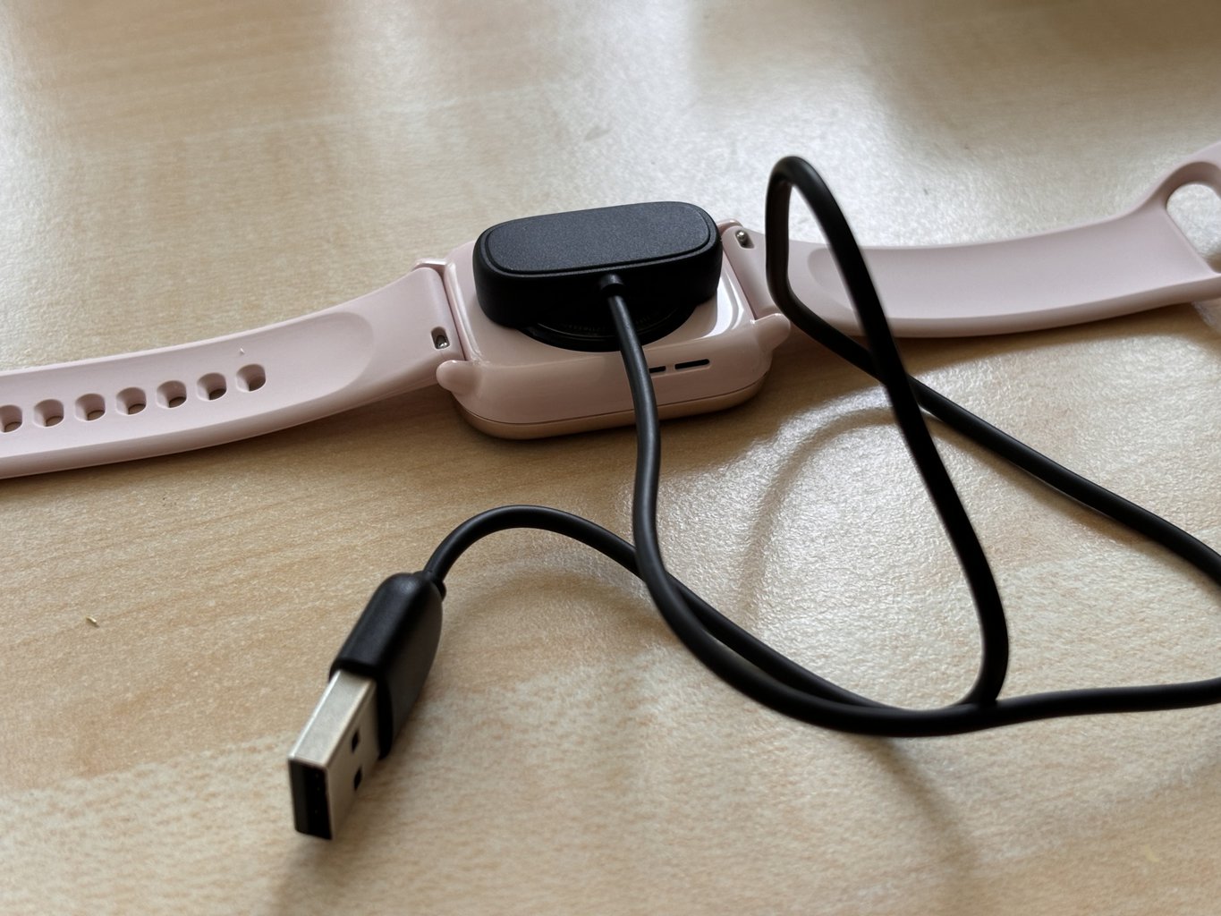 Mit einem Stromkabel mit magnetischem Ende dauert es etwa eineinhalb Stunden, um die Uhr von 0 auf 100 % aufzuladen.