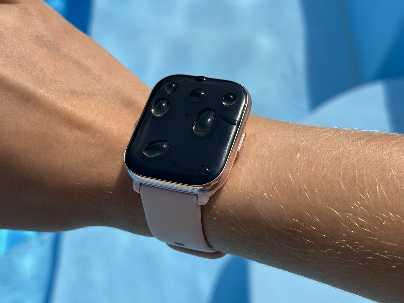 Schwimmen ist eine der vielen Aktivitäten, die die Smartwatch misst. Außerdem sperrt die Uhr dabei automatisch den Bildschirm (d. h. sie blockiert Berührungen - drücken Sie lange auf den Knopf, um die Aktivität zu unterbrechen oder zu beenden) und löst eine Vibration aus, um das Wasser herauszudrücken, wenn Sie fertig sind.