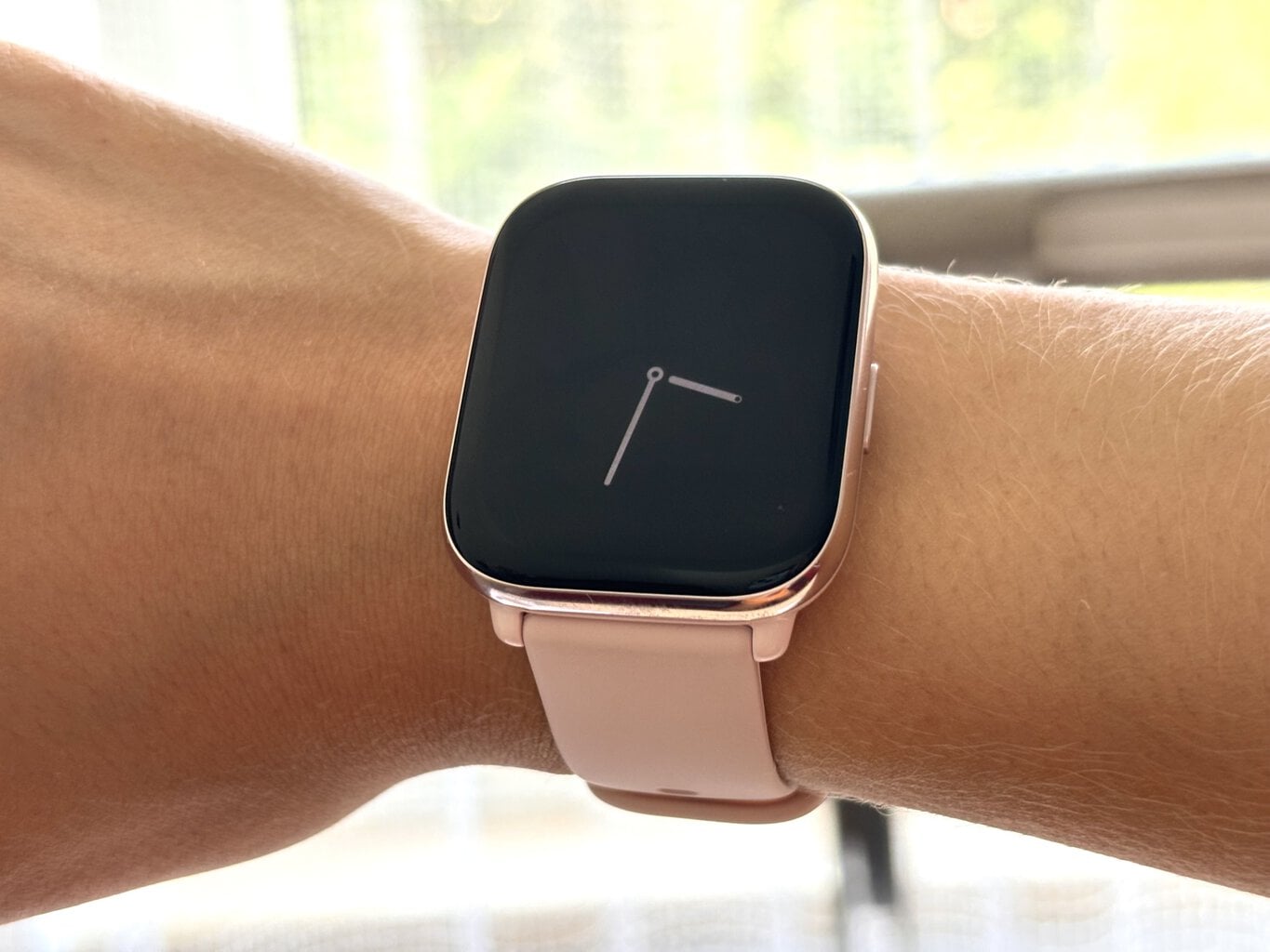 Sie können die Amazfit Active-Uhr in Lavendel, Mitternachtsschwarz und/oder Pink wählen, was ich getestet habe. Alle Modelle passen für Handgelenke mit einem Umfang von 13,5 bis 19 cm und richten sich daher eher an Frauen.