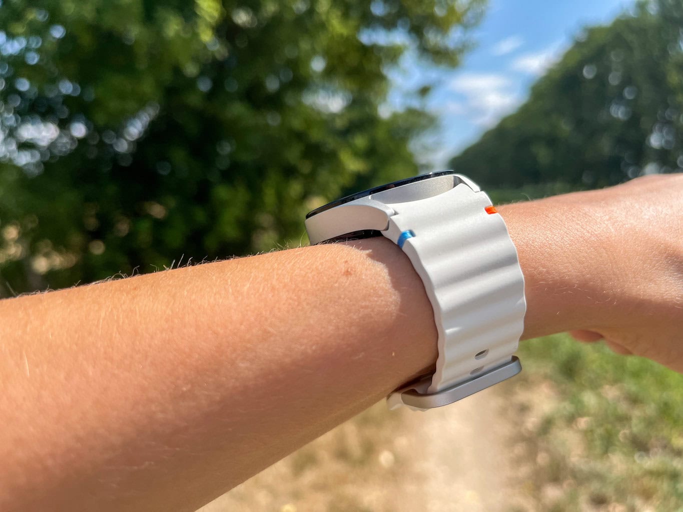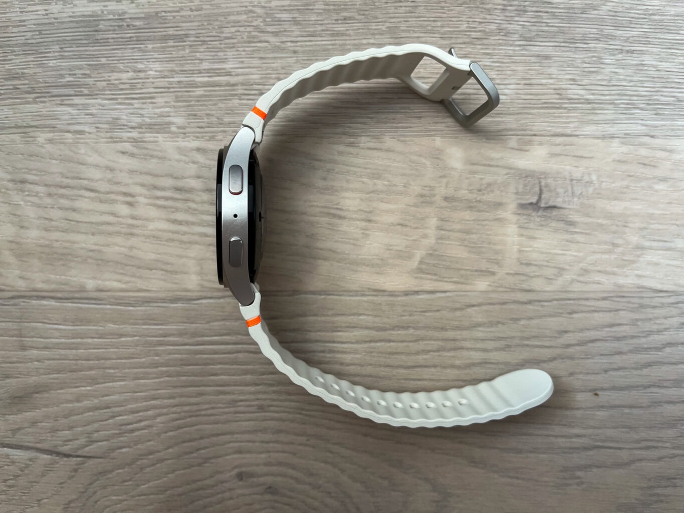 An der Seite befinden sich zwei Knöpfe, die auch mit verbundenen Augen leicht zu ertasten sind und praktisch sofortige Reaktion bieten. Die Hardware-Lünette, die zum Beispiel die Galaxy Watch 6 Classic hat, findet man hier nicht, die Uhr funktioniert nur mit der Software. Verschiedenen Gerüchten zufolge wird jedoch erwartet, dass Samsung wieder ein Modell mit dem Namen Classic auf den Markt bringen wird, das die Lünette bietet.