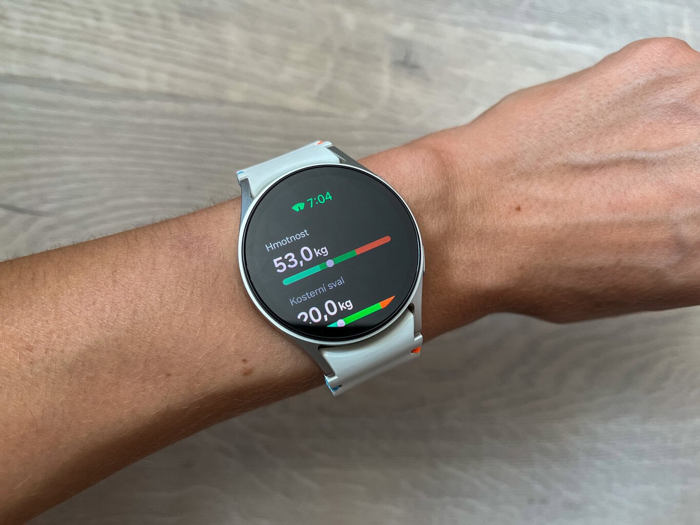 Wie andere Samsung-Uhren kann auch diese eine Analyse der Körperzusammensetzung durchführen. Damit erhält man einen Überblick über den Anteil von Skelettmuskeln, Fett und Körperwasser. Außerdem gibt es eine Schätzung des Grundumsatzes, also der Energiemenge, die im Ruhezustand verbraucht wird. Natürlich sind die Werte als Richtwerte zu verstehen, aber für einen grundlegenden Überblick über Ihren Gesundheitszustand sind sie ausreichend. Wenn Sie zum Beispiel abnehmen oder Muskelmasse aufbauen wollen, können Sie sehen, wie sich die Daten im Laufe der Zeit entwickeln (zumindest wenn Sie die Messungen immer zur gleichen Zeit durchführen).