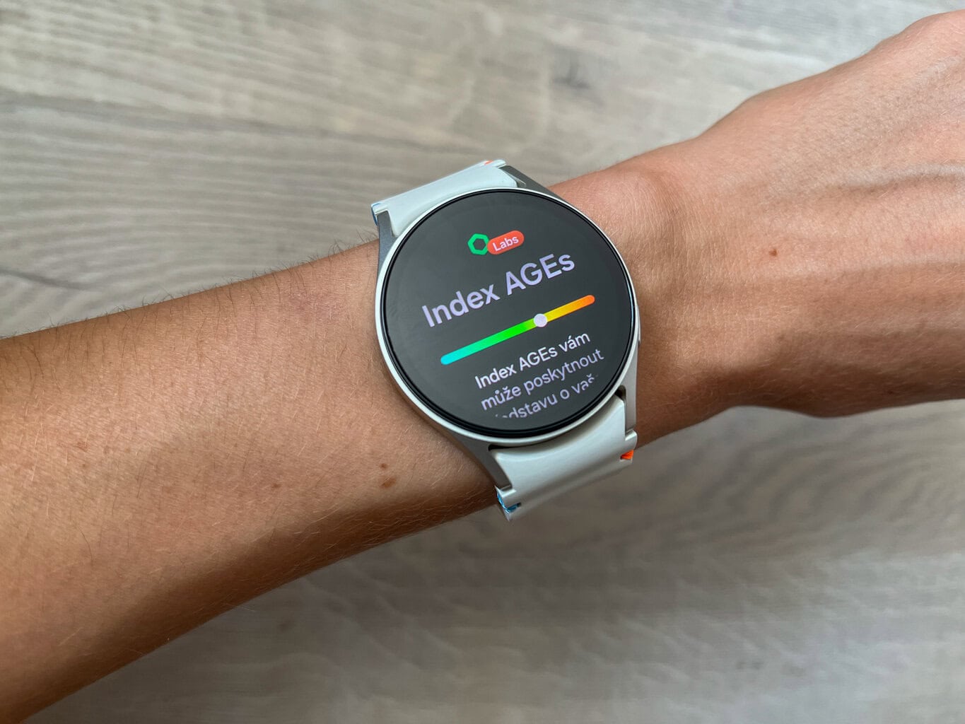 In der Uhr (und ausführlicher in der mobilen App) finden Sie den AGEs-Index, der den gesamten Prozess Ihrer biologischen Alterung widerspiegelt. Die Uhr misst die Endprodukte der fortgeschrittenen Glykation (oder AGEs), die sich mit zunehmendem Alter in Ihrem Körper ansammeln. Die App gibt Ihnen auch Tipps, wie Sie Ihre Werte verbessern können. Der Wert wird nach jedem Schlaf aktualisiert, und ich persönlich war von dem Niveau überrascht. Allerdings ist es schwer zu sagen, wie realistisch er ist.