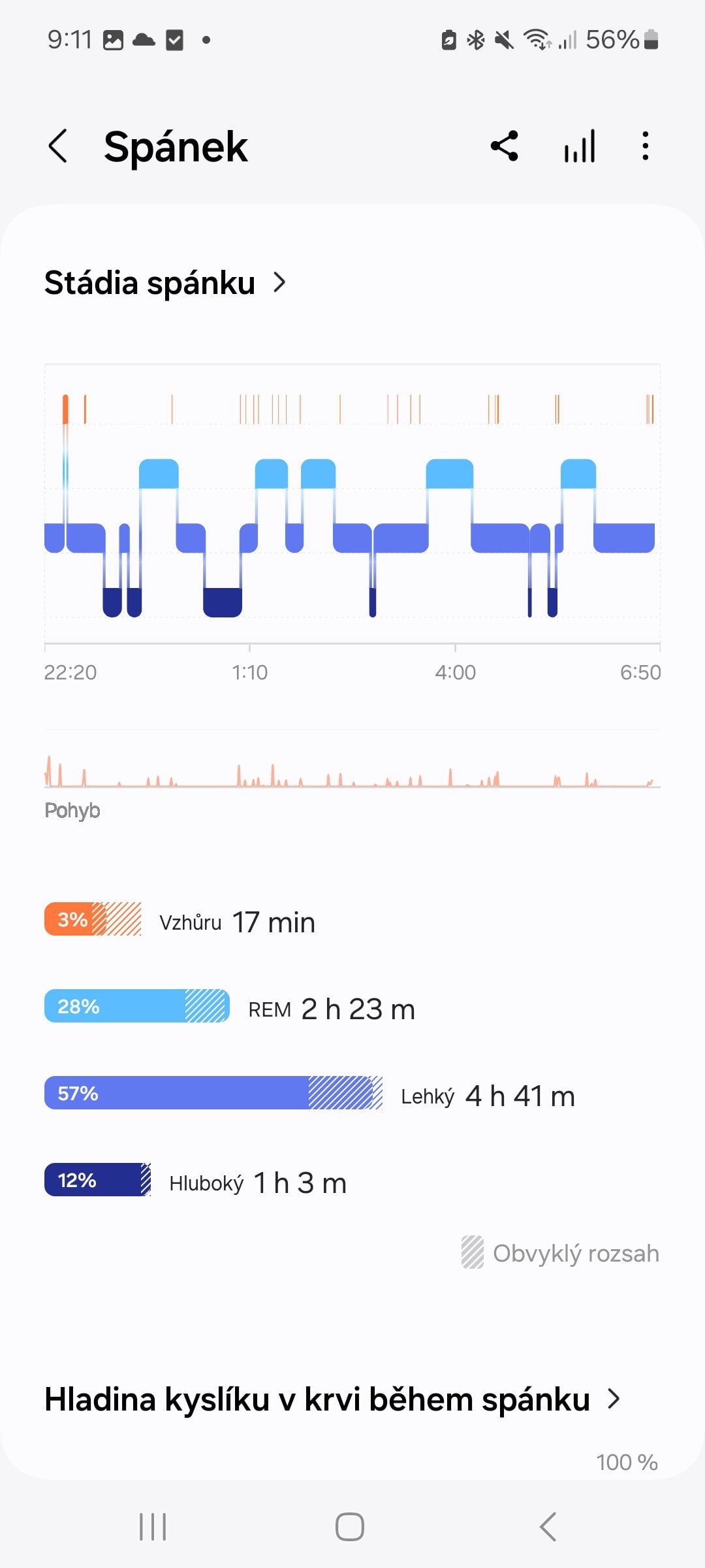 Detaillierte Diagramme und Statistiken können Sie in der mobilen App abrufen. Wenn Sie die erweiterte Messung aktivieren, überwacht die Uhr Ihren Blutsauerstoffgehalt während des Schlafs und die Hauttemperatur Ihres Körpers. Auf diese Weise können Sie z. B. aufkommende Krankheiten erkennen, und für Frauen ermöglichen die Daten eine genauere Überwachung ihres Menstruationszyklus.