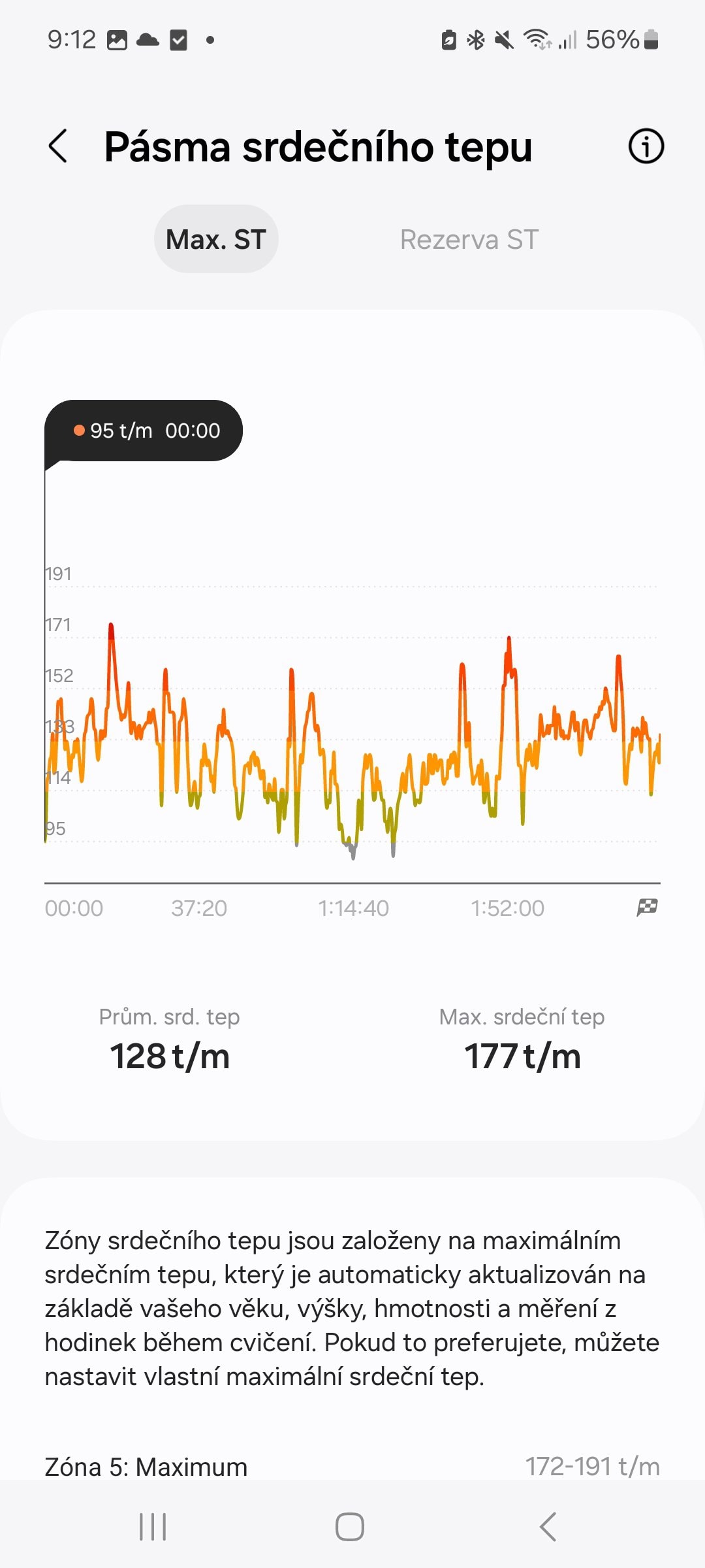 Zu den Grundfunktionen gehört natürlich die Herzfrequenzmessung, die dank des neuen BioActive-Sensors mit 13 LEDs noch genauer ist. Sie haben die Wahl zwischen einer Messung auf Abruf, alle 10 Minuten oder einer kontinuierlichen Messung. Die Uhr warnt Sie auch, wenn der Wert zu hoch oder zu niedrig ist. Sie kann auch den Sauerstoffgehalt des Blutes messen (sogar im Schlaf). Ein Kollege in der Redaktion hat die Galaxy Watch Ultra (mit demselben Sensor) mit dem Brustgurt verglichen und die Ergebnisse waren praktisch identisch. Die Genauigkeit der Messung ist also groß.
